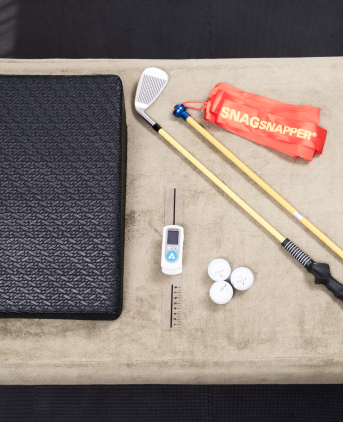 専用の関節可動測定器「イージーアングル」 を使って、スイングに必要な可動域と筋力を細かくチェック