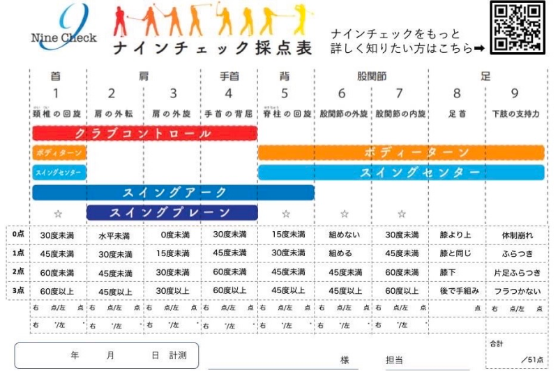 ナインチェックはプロゴルファーも実践する体の可動域チェックシステムです。